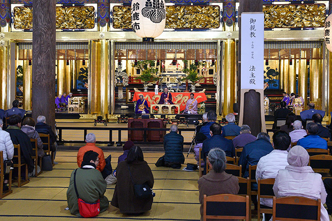 御開山親鸞聖人は弘長2年(1262年)11月28日(推歩陽暦1月16日)に90歳のご生涯を終えられました。そのご命日を機縁に、本山専修寺では1月9日から16日の間、聖人が出会われた念仏の教えに、私たちも遇いえるご縁をいただいたことをよろこび、その恩徳に報いる報恩講(お七夜さん)が勤まります。法会中、本山ではさまざまな行事が実施されます。