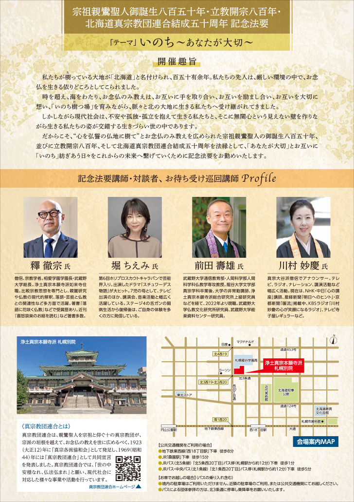 | 会場 | 浄土真宗本願寺派札幌別院(西別院)本堂 (札幌市中央区北三条西19丁目2-1) |