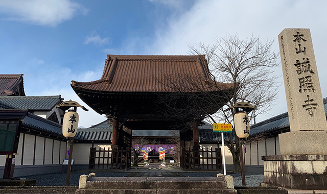 誠照寺の起源は、1207(承元元)年親鸞聖人が越後にご配流の途中、上野ヶ原の波多野景之の屋敷に滞在され、弥陀本願の要法を説かれた事がはじまりとされています。当初真照寺と称しましたが、1437(永享9)年に後花園天皇より誠照寺の寺号を賜りました。戦国時代の一向一揆との争いや秀吉による焼き討ちにより伽藍を焼失しましたが、江戸時代に復興され今に至っています。