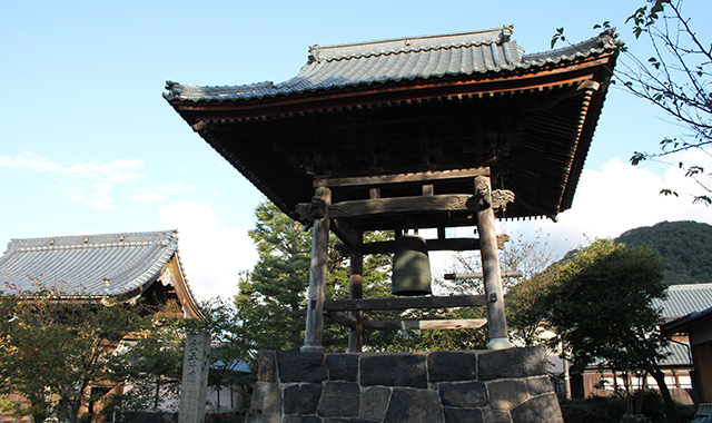 延焼を免れた鐘楼堂は、御影堂と向き合う『三里山』から切り出した黒く輝く安山岩の石組土台に立ち、重厚な総欅造りの伽藍からは消失前の両堂を彷彿とさせる。